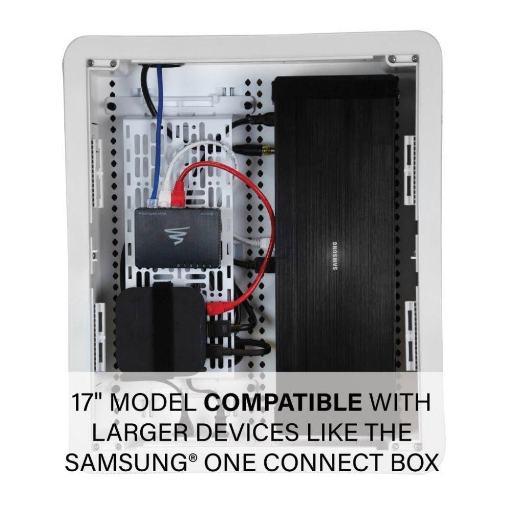 The IWB17 43.18cm enclosure fits larger devices as well including the Samsung One Connect Box used with QN95A, QN900 and QN800A.
