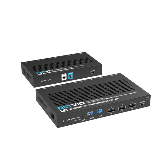 Professional 70m 4K60 HDMI & USB-C extender with USB 2.0, PoC, and 60W charging. Ideal for Zoom, Teams & Meet rooms — seamless auto-switching, 4K clarity, and smart room integration