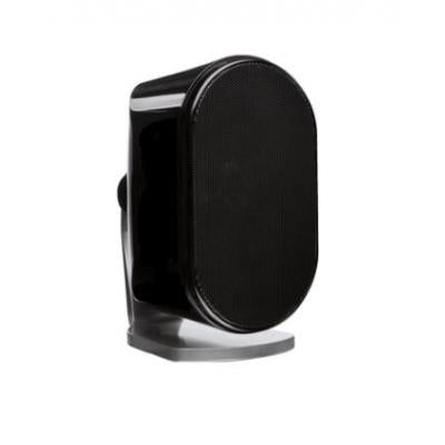 Compact high-performance satellite speaker with die-cast aluminum housing, delivering clear, detailed sound and elegant design for modern home audio systems.